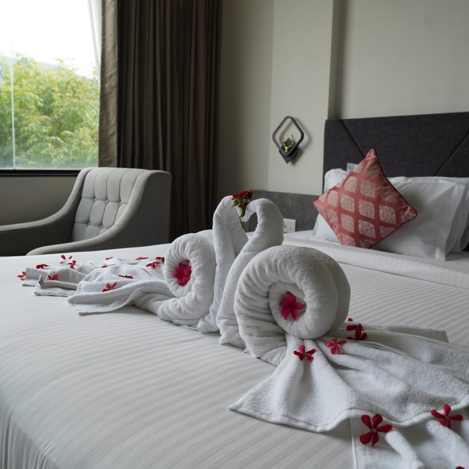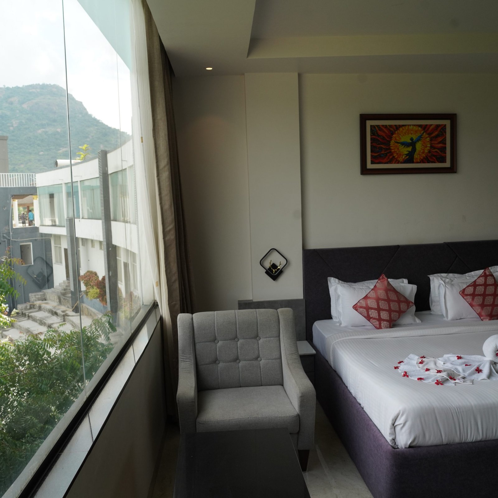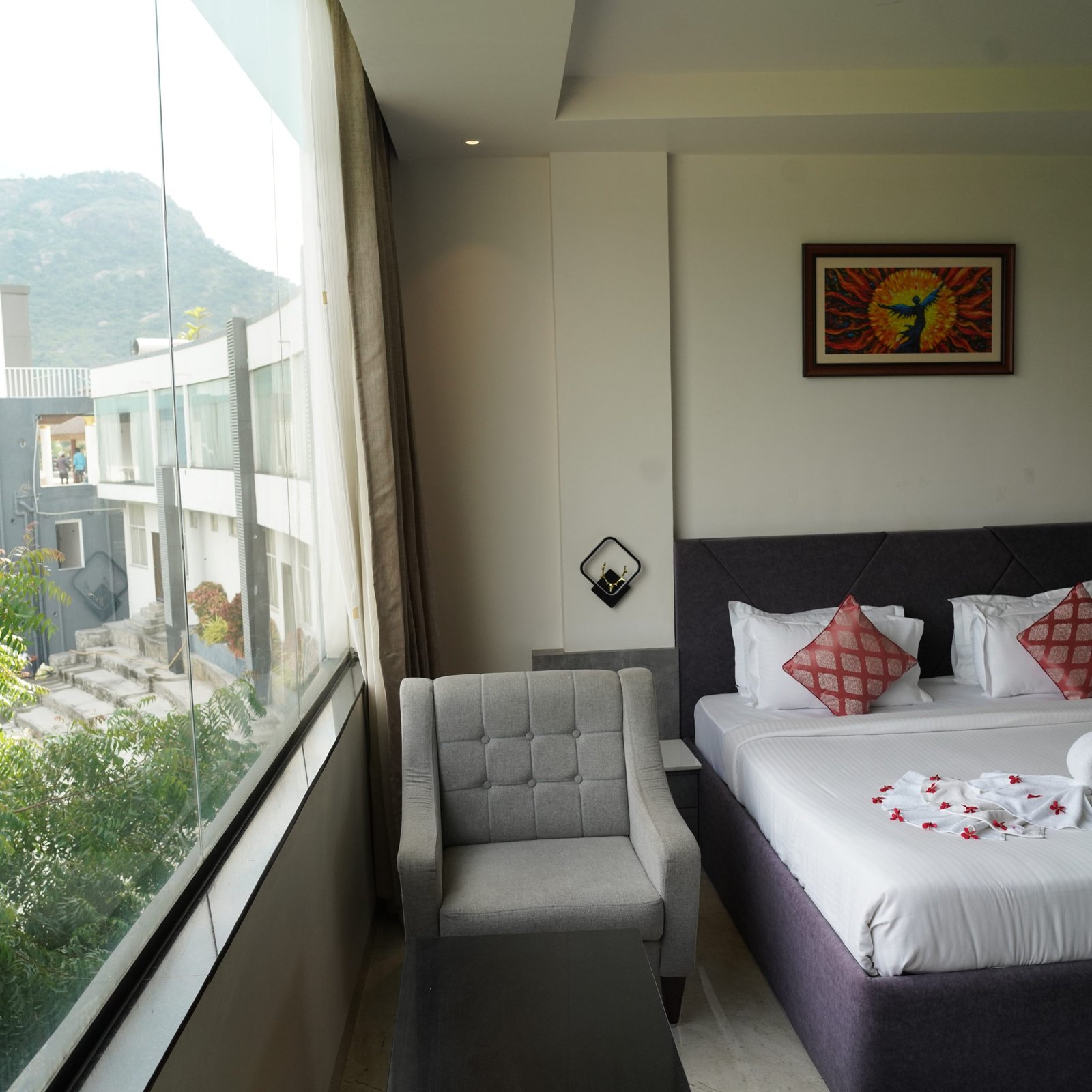 Junior Suite comprises of 1 Double Bed or 2 Twin Beds, 2 Bedside Tables, a Desk & Chair. The room is furnished with wall to wall carpeting, trendy furnishings and a balcony.